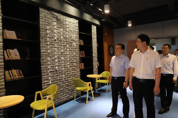 簽約活動前,王成林帶領第四支部黨員一起陪同江蘇銀行的黨員同志參觀了東方集團二樓的黨群活動中心。