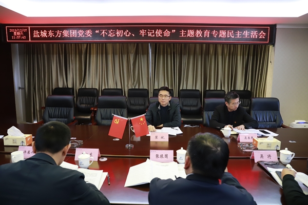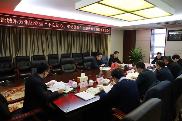 12月7日上午,鹽城東方集團黨委領導班子召開“不忘初心、牢記使命”主題教育專題民主生活會。會議聚焦“不忘初心、牢記使命”這一主題,緊扣學習貫徹習近平新時代中國特色社會主義思想和黨的十九屆四中全會精神這一主線,按照“四個對照”“四個找一找”的要求,盤點收獲、檢視問題、深刻剖析,真正做到觸及問題實質、觸動思想靈魂,推動鹽城東方集團高質量發展。
